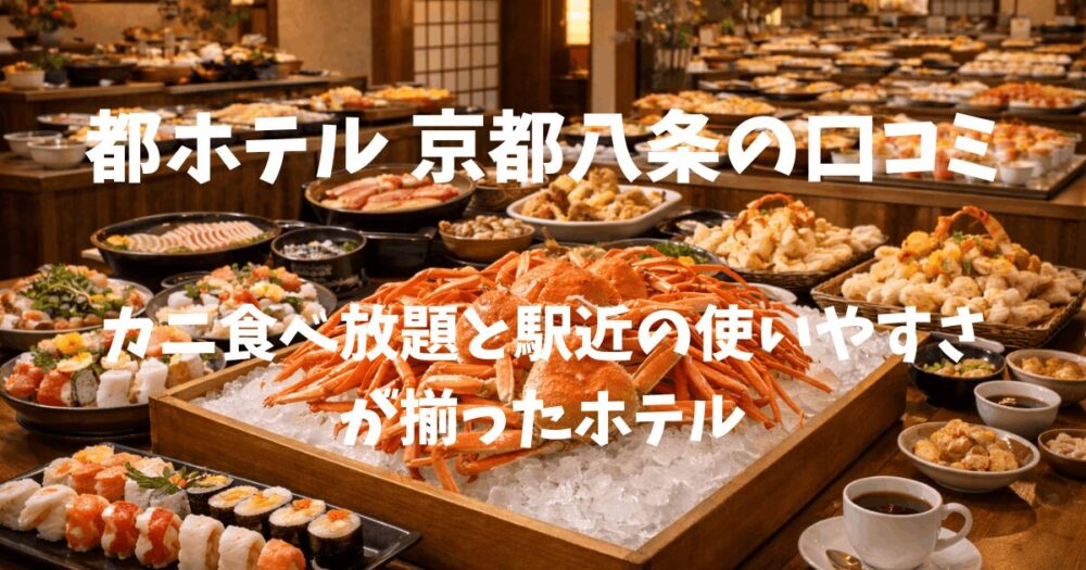 京都でカニ食べ放題のホテルを探していると、「立地が不便」「食事が微妙」といったズレが気になりやすいです。 その中で「都ホテル 京都八条」は、京都駅すぐという動きやすさを押さえながら、カニ食べ放題をしっかり楽しめる点が特徴です。 観光と食事の...